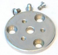 Hier noch einige Bilder der verschiedenen Teller : Standard-Eisenteller von oben Standard-Eisenteller von unten Aluteller von oben Aluteller von unten Adapter zur Montage des Alutellers Alu-Hilfsteller von oben (erste Serie, bem 124/II sieht die Matte etwas anders aus) Alu-Hilfsteller von unten