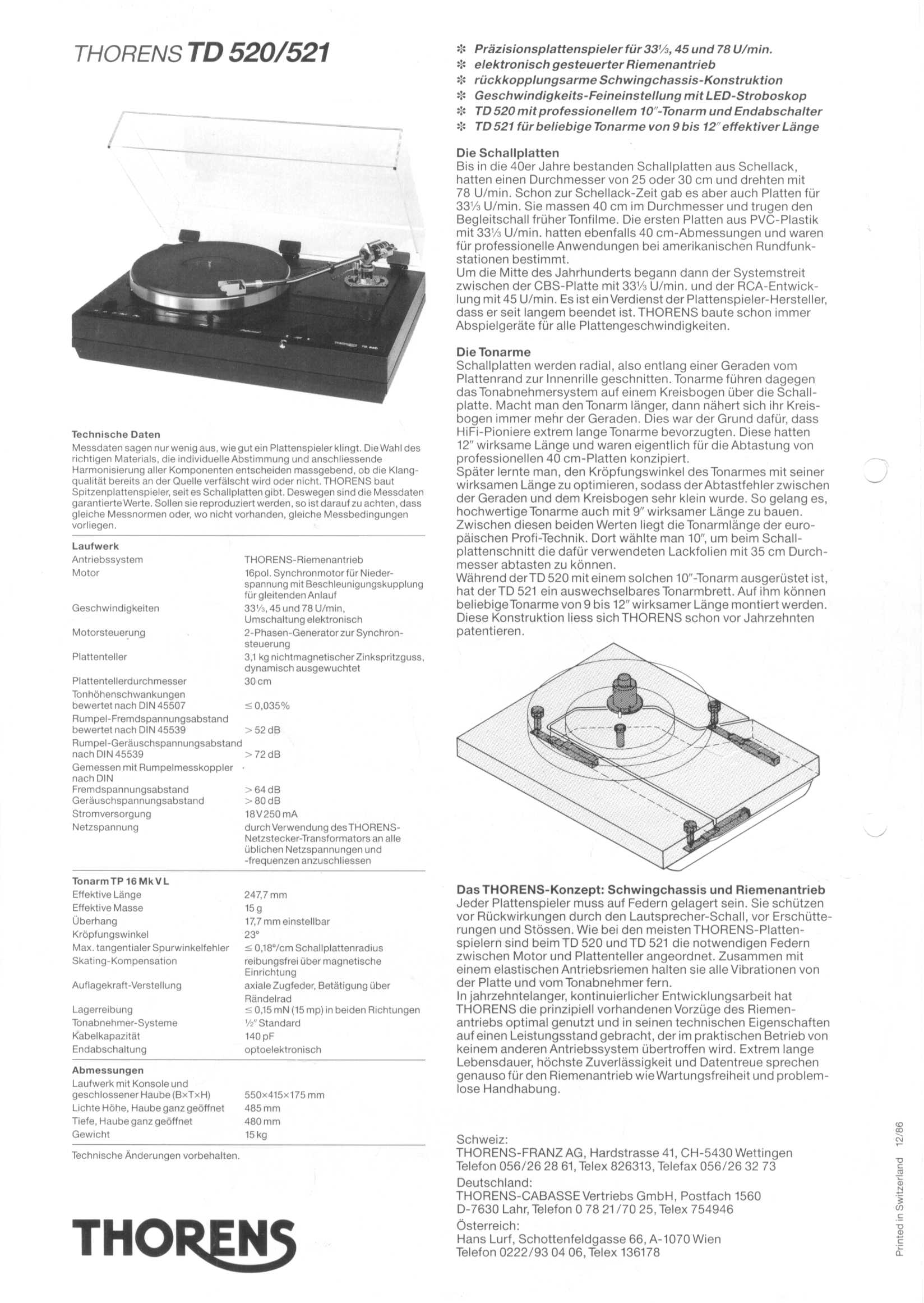 Hier der Wortlaut eines Audio-Tests vom August 1987 (Thorens TD 520 mit SME 3012-R, von Thomas Senft):